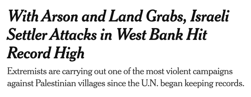 These displays of criticism are deeply self-serving, for domestic and international audiences, and not reflective of any commitment to actually address settler violence. But what has changed is that right-wing Zionists are suddenly decrying settler violence, usually the province of Israeli centrists or liberals (as insincere as the latter can be).