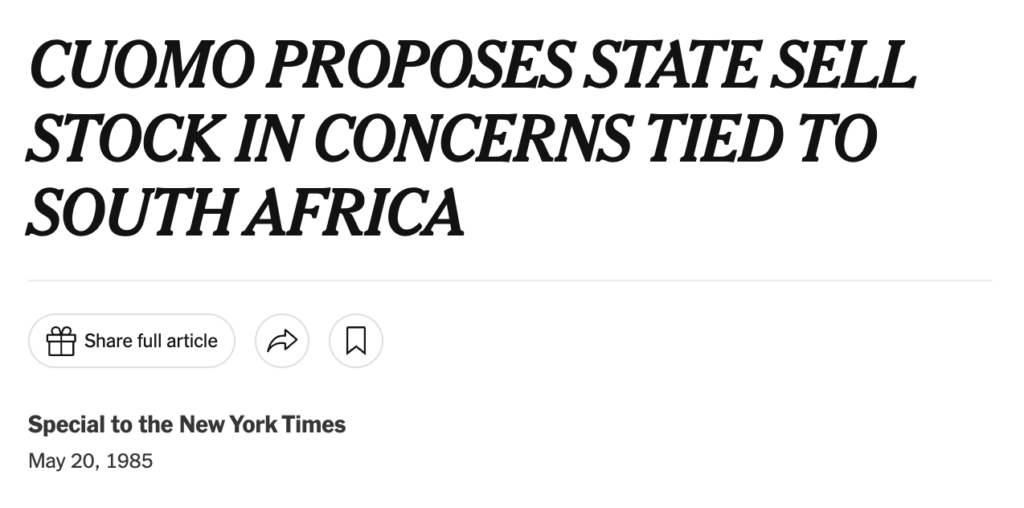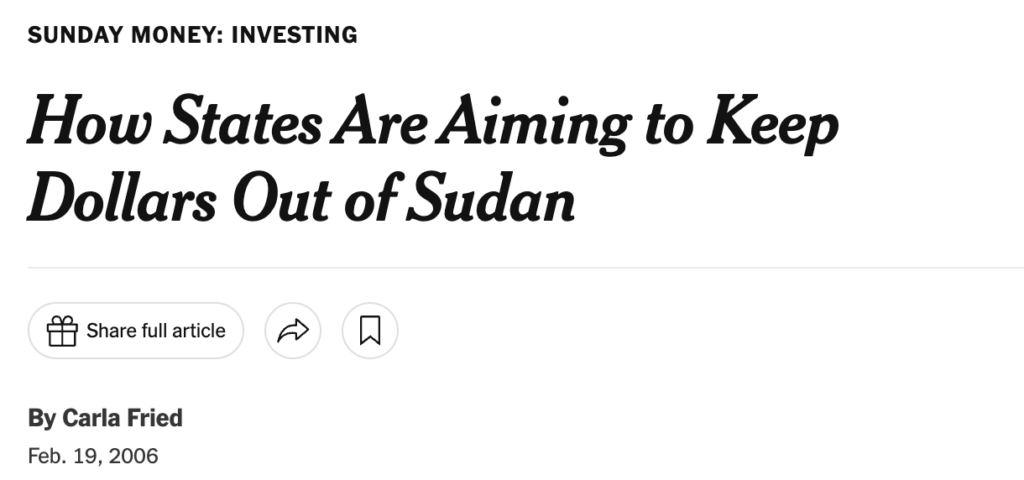 Back in the late 2000s, many states — including New York state — divested from companies investing in Sudan.