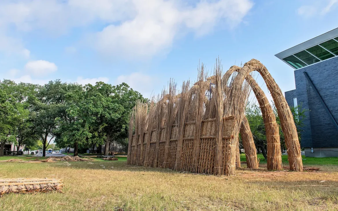 In the middle of a Texas heatwave rivaling temperatures in the Persian Gulf and Sahara Desert, an Iraqi man and two women stood on scaffolding, attempting to make one of nine arches constructed entirely of reeds look a little prettier. They were trying to perfect the round crown of the arch, and after some phone calls to a master builder in Iraq, like a son calling their mom for help with a recipe, questions were answered, and they made more progress. In the cooler evenings, solar beatdowns were replaced by a more jovial scene of music and food as Iraqi immigrants in Houston came by to help construct the five-thousand-year-old structure known as a mudhif. Here, past the oak-lined one-ways of Rice University, next to its Moody Center for the Arts, local nonprofits have teamed up to put the culture of the Marsh Arabs on display.