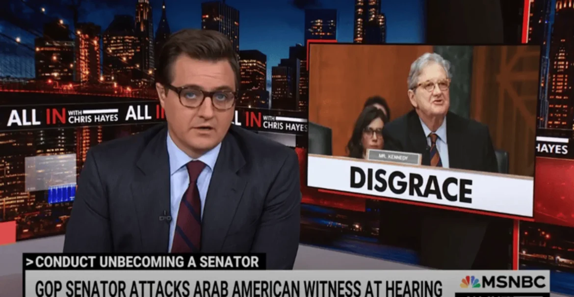 An MSNBC host called for consequences for a Republican senator from Louisiana who launched into a racially charged line of questioning against the head of the Arab-American Institute — during a hearing aimed at discussing the prevalence of hate crimes.